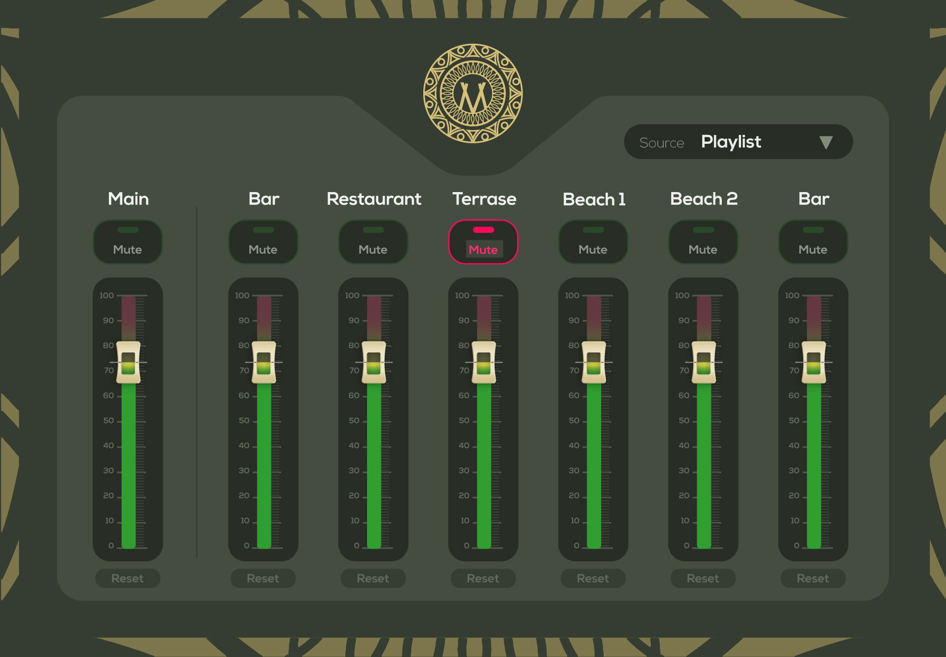 If this is how it operated, I could have a layout for each “mix”, which would reduce confusion and instances of users inadvertently adjusting someone else’s mix. It would also eliminate the need for a tab container for selecting the destination mix, which would result in more space for other widgets.